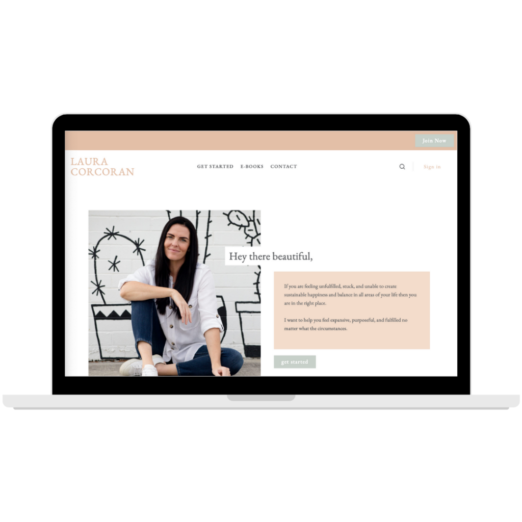 - Creating beautiful pages including home, sales page, and “get started” page, in-line with Laura’s vision for her brand.